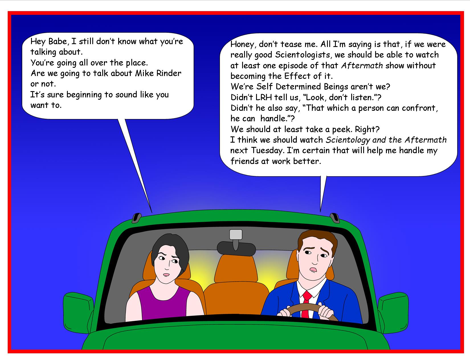 Only the most hip disaffected early 30’s Scientologists drive late 50’s Morris Minors while chatting about church matters! Or is that a Nash Metropolitan?