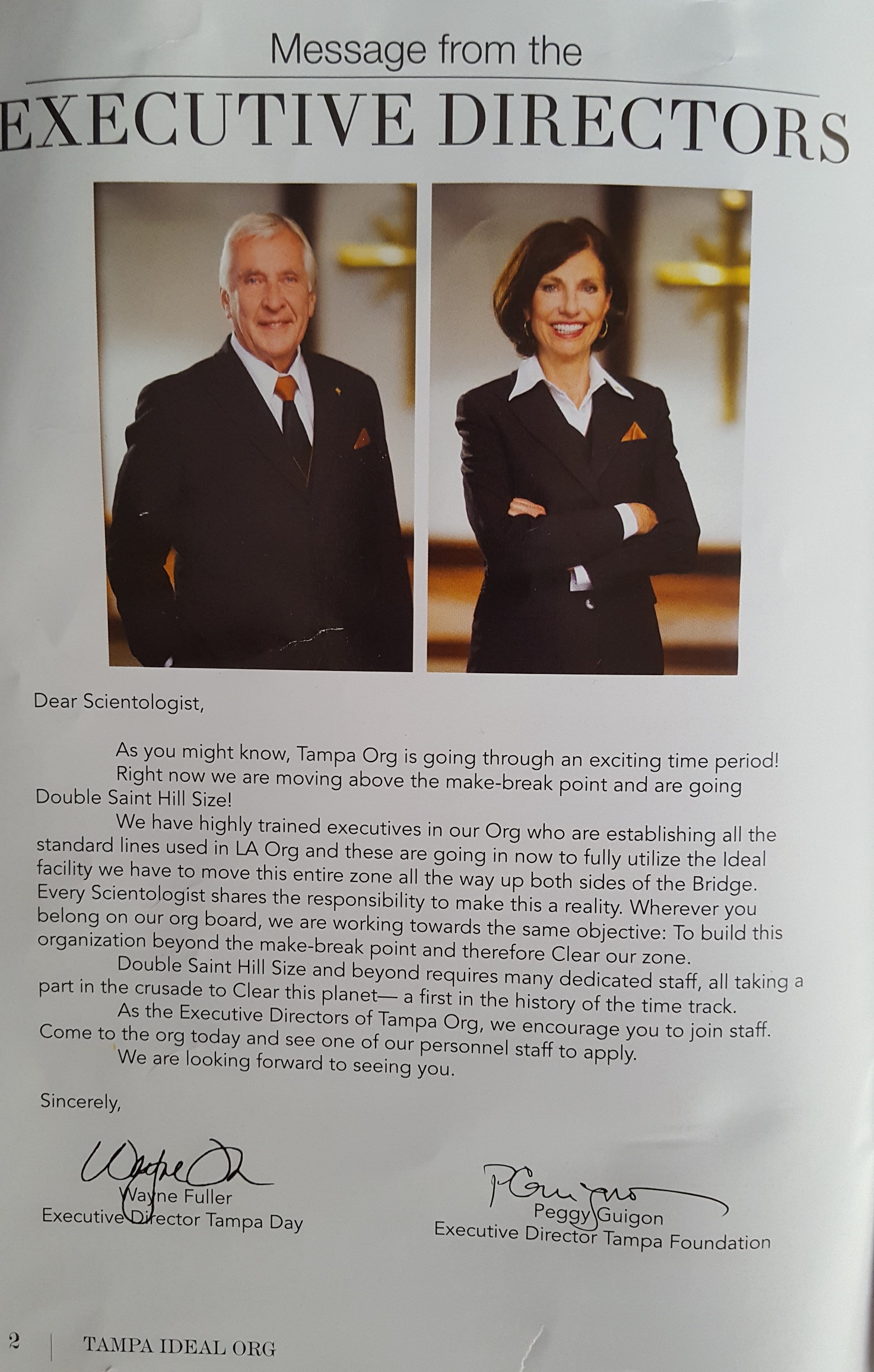 If life as a staff member of the Tampa Org was so great, you would not need to send out promo. People would be joining staff just through word of mouth. No sales pitch required. The good times are self-evident. This is obviously not the case.